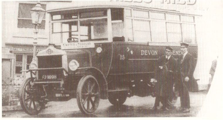 The Devon General Omnibus & Touring Co Ltd was incorporated on 22 May 1919. Their first three buses were open-top double-decker type AEC 'YC' originally operated by London General. All three were licensed on 11 June 1919 and given Fleet Nos 1, 2 and 3. The buses were respectively named Sir Francis Drake, Sir Walter Raleigh and Sir John Hawkins. Their registrations being T6942, T6944 and T6946.