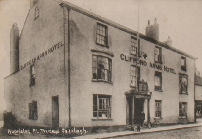 Mr Alfred Milton was the proprietor in 1895/1896. In the winter of 1895 he operated a horse-drawn bus from the inn to the railway station at a fare of 6d, in 1897 the driver of which was a John Cornish. In the April of 1896 it was reported that a double tennis court was shortly to be provided at Mr Milton's Clifford Arms Hotel. Newspaper advertisements of that period advised that the hotel had undergone refurnishing, was newly decorated and was under new management. The hotel was provided with 'every accommodation for families and tourists' and had 'Moderate tariffs'. The famous fairy Glen and Chudleigh Rocks were only five minutes walk away.