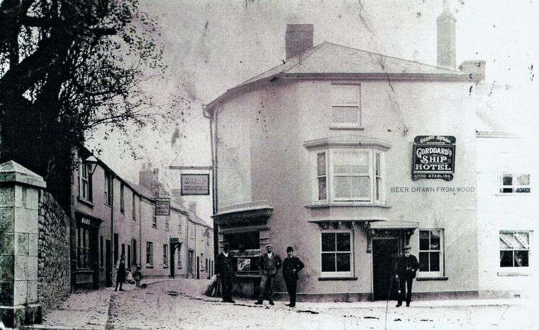 This inn stands on the corner of Clifford Street (previously Mill Lane) and Fore Street. The Land Tax assessments for 1806–17 show the inn to be in the ownership of John Tuckett and that he was also residing there. In the first of those years the premises were described as an ale house. John Tuckett is shown in the 1798 town directory as a victualler and he was likely at the Ship then. In both 1806/07 John Tuckett also owned the Red Lion.