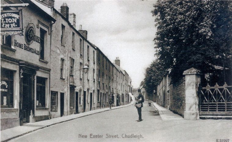 We know that until 1822 the main road from Plymouth to Exeter passed up what is now Old Exeter Street. At the present site of the Town Hall was formerly The Kings Arms and further up the street another inn. If we assume the Plymouth Inn was on the road to Plymouth then it is reasonable to assume that the other inn in Exeter Way, as it was termed in those days would have been The Exeter Inn. What confuses the issue slightly is that in 1830 was an inn in Exeter Way but called The New Inn (the house name Newinnton Lodge derives from that name). However, by 1838 the Exeter Inn was in Culver Street just above Culver House. The explanation for this might be that originally there were three inns in Exeter Way, The Kings Arms, The Exeter Inn and The New Inn. When the original road out of the town via Heathfieldlake Hill was dis-turnpiked the Exeter Inn relocated to Culver Street which from 1822 was the main way out of Chudleigh over Haldon toward Exeter.
