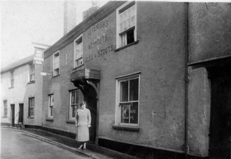 The first owner traced (from Land Tax records) is William Wright whose ownership spanned 1806–1826. He also owned the Plymouth Inn and The Globe (formerly the Maltsters Arms). In 1806 the occupier was Ann Flood. The next landlord, known from a parish apprenticeship indenture of 1810 was Joseph Avant, he was followed by Henry Salter from 1820 who was at the Plymouth Inn (1814/17) who continued until his death on 22 November 1835. His son, John Salter followed (he is listed on the 1838 Electoral Roll) for about ten years and then Prudence Salter for about the next three years. John Skitch followed John Berry in January 1856 and Thomas Wright [b1829] (formerly a farmer at Hams Barton) arrived in 1858 until 1870, he moved to Brockley House (junction Fore Street/Oldway) and lived there until his death in 1904. John Salter had followed him as proprietor for about three years and then John Cornish 1875–1893 who had moved here from the Lion Inn.