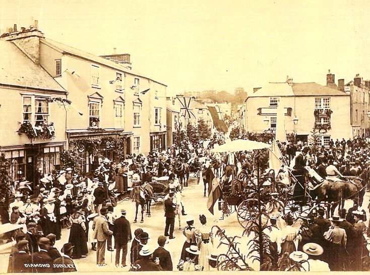 Two postcard photographs survive dating from the Diamond Jubilee of Queen Victoria (20 June 1897) and although Conduit Square is full of townsfolk the lamps can clearly be seen affixed to the obelisk but another point to note is that the triangular enclosure adjoining the obelisk had yet to be constructed.