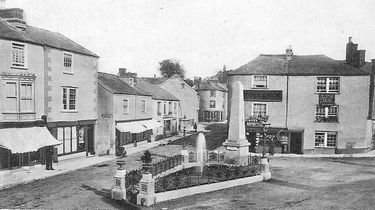 At the centre of the town of Chudleigh at the junction of New Exeter Street [Culver Lane], Old Exeter Street [Exeter Way], Clifford Street [Mill Lane] and Fore Street in the open space called The Square [Conduit Square] stands an obelisk of granite. Its site is roughly that of the original market place and its market house which was destroyed on 22 May 1807 in what subsequently became referred to as 'The Great Fire of Chudleigh'. A market cross also stood close by, but this was subsequently lost and no record survives to reveal its fate following the fire.