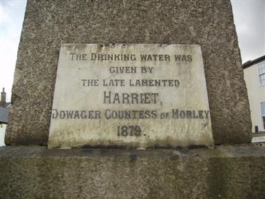 The drinking water was given by the late lamented Harriet, Dowager Countess of Morley 1879