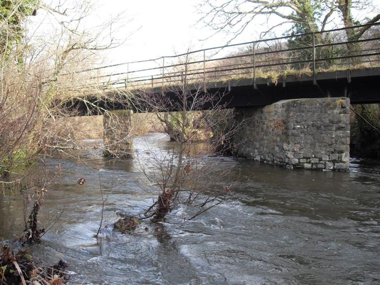 Almost immediately in front of the station forecourt is the Trusham lane which crosses the Teign at this point via a stone bridge, of three segmental arches designed by James Green (County Surveyor of Bridges) in 1836 and built shortly afterward by Chudleigh stonemasons John Flood and Charles Babbage. Named Crocombe Bridge after the nearby farm a bridge has existed here since at least 1583 when as a County Bridge Chudleigh parish were directed by the Justices to contribute to its repair. That bridge was reported as being in decay in 1677 and finally replaced in 1694 at a cost of £70. That replacement bridge, surveyed in 1809 had two arches with a roadway six and a half feet across, enough width for laden pack horses.
