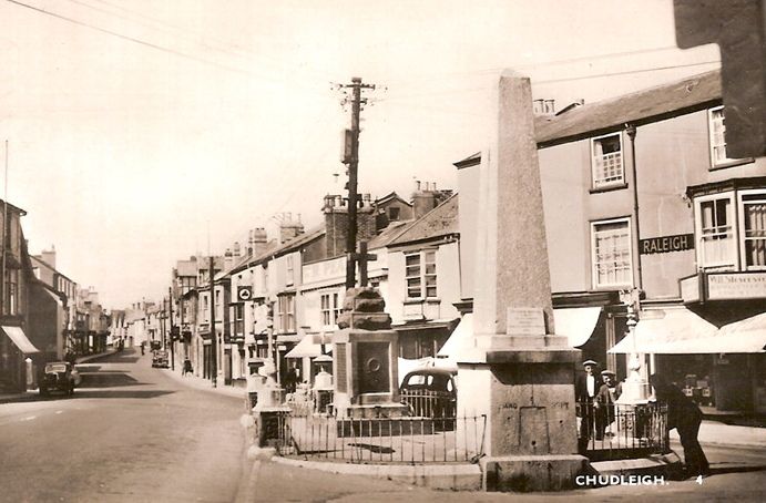 In November 1946 at the parish meeting, discussions were held as to how best to honour the fallen of Chudleigh in the recent war. Ideas put forward were the placing of seats around the town inscribed with their names, a public baths or a new fire engine; the baths idea would cost at least £2,000 and the fire engine idea was also not proceeded with on cost grounds. In March 1947 the idea was to create a new tablet on the north side of the existing town centre memorial, the cost was considered to be £200.