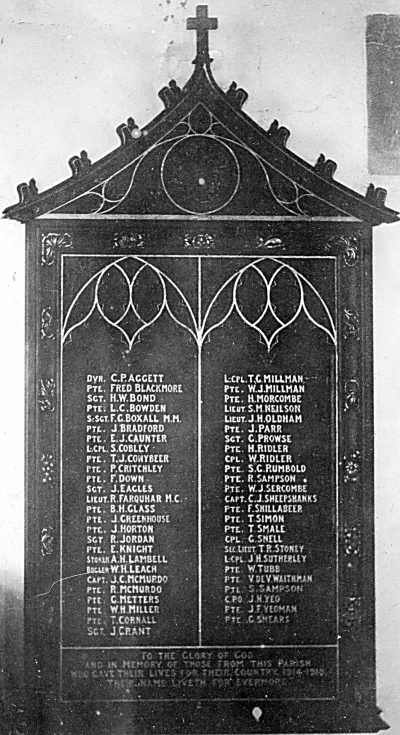 The WWI Roll of Honour memorial in the church, probably photographed shortly